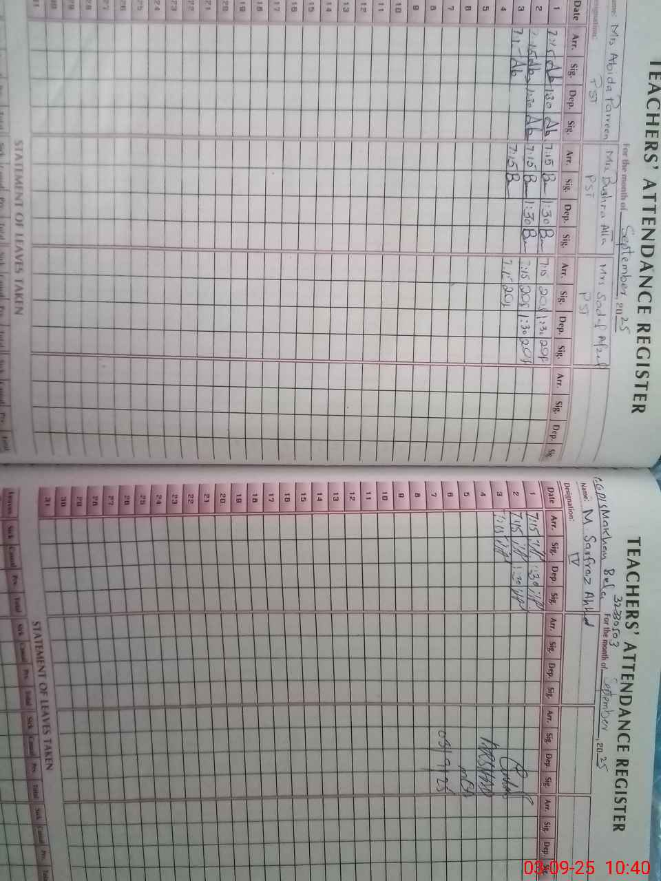 | Name: AB**** PE**** Designation: (School Headmaster's/Headmistress's) PST Phone/Cell Number: 03**** |