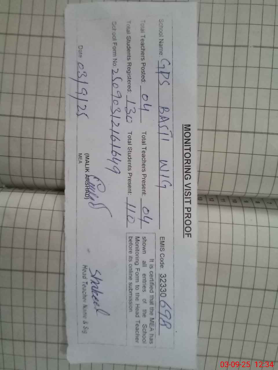 | Certified that this School was Inspected by the Undersigned MEA/DMO Today and the Information Stated Above is as Per Record. | |||||