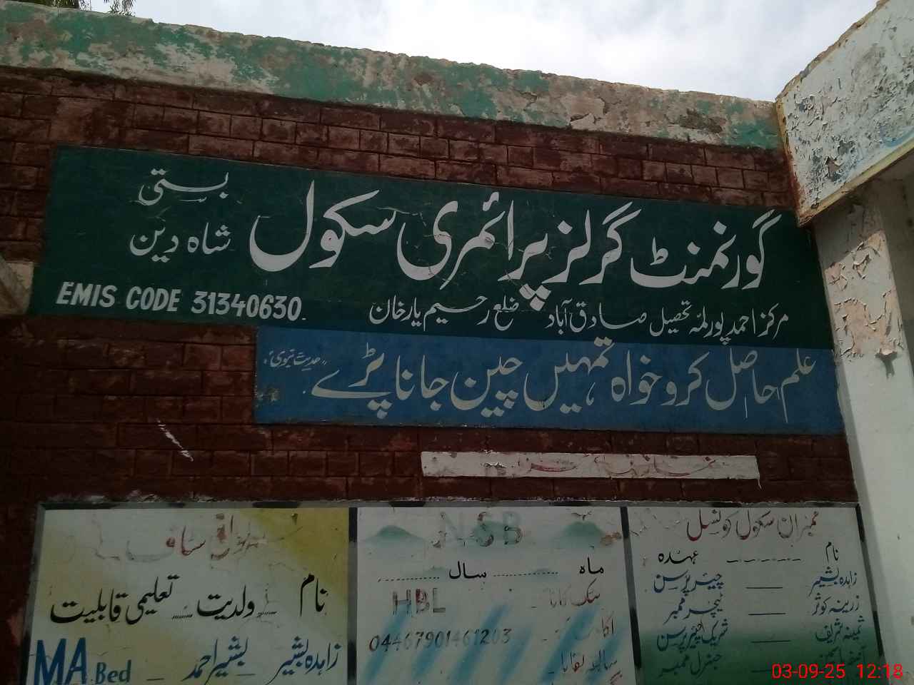 | EMIS Code: 31340630 | Name of School: GGPS SHAH DIN NO.1 | |||