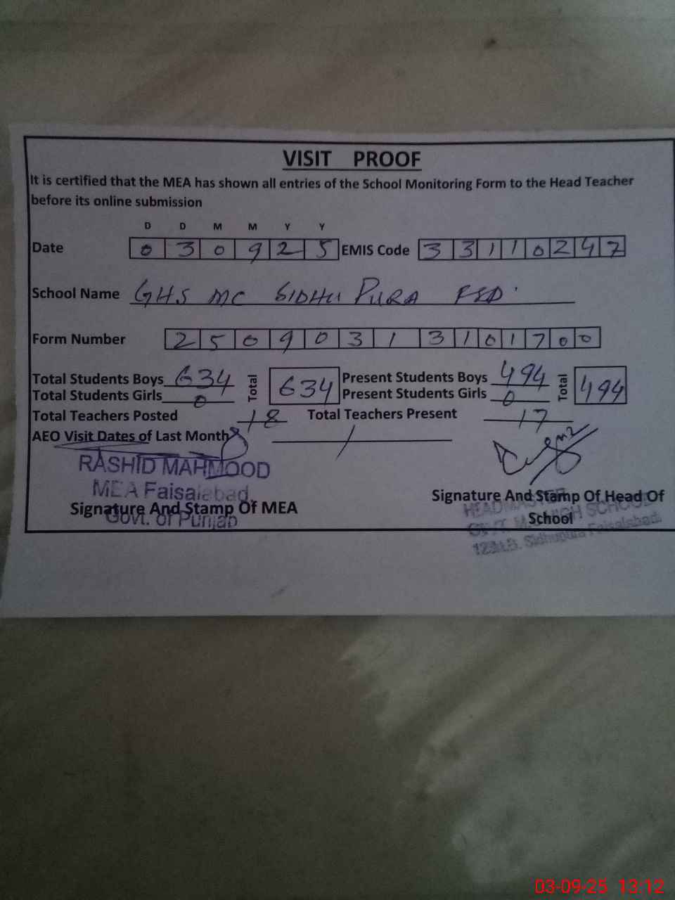| EMIS Code: 33110247 | Name of School: GHS MC SIDHU PURA | |||