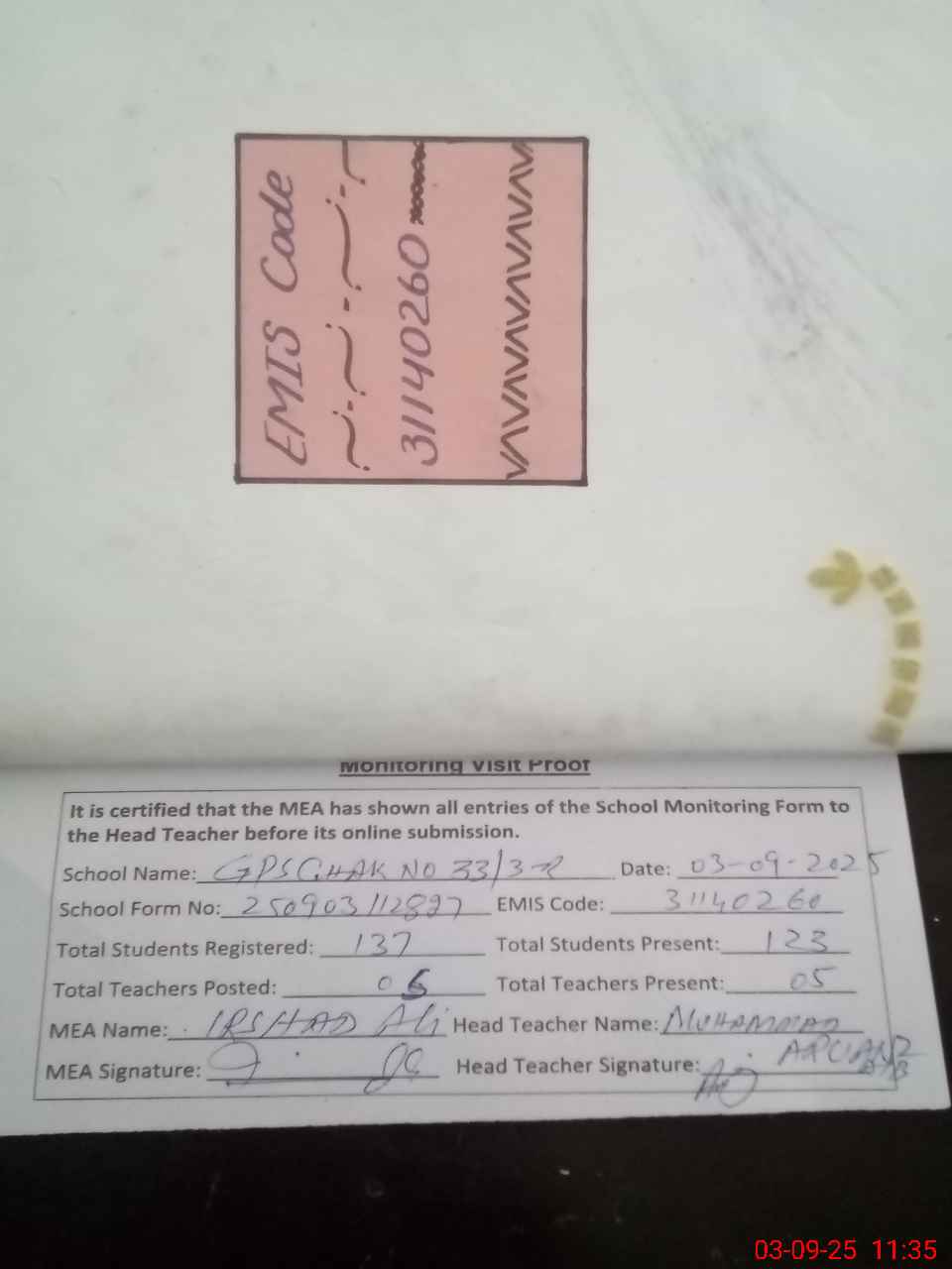 | EMIS Code: 31140260 | Name of School: GPS CHAK NO.33/3-R | |||