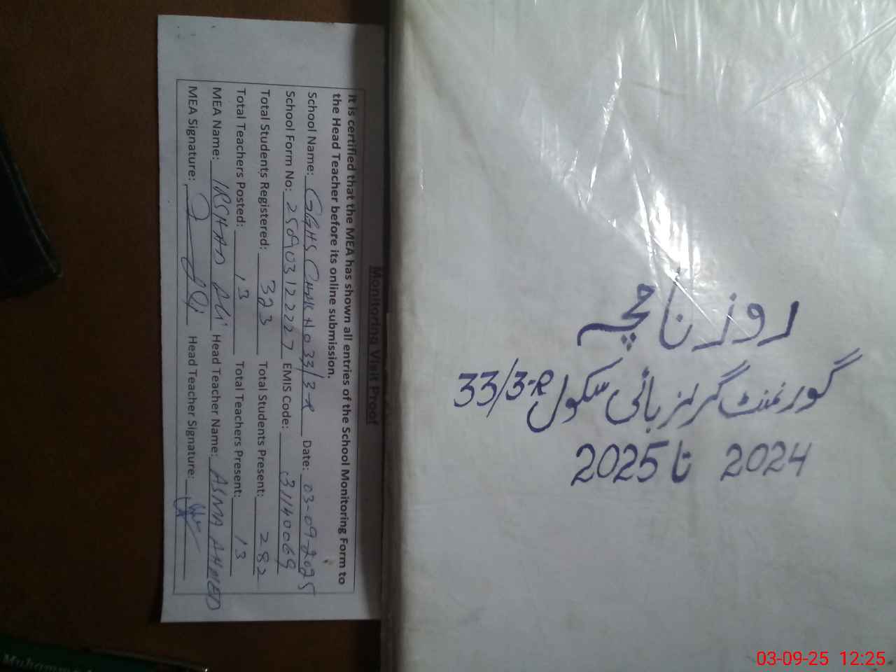 | Attendance Register | Head Teacher | MEA with School | Visit Proof |