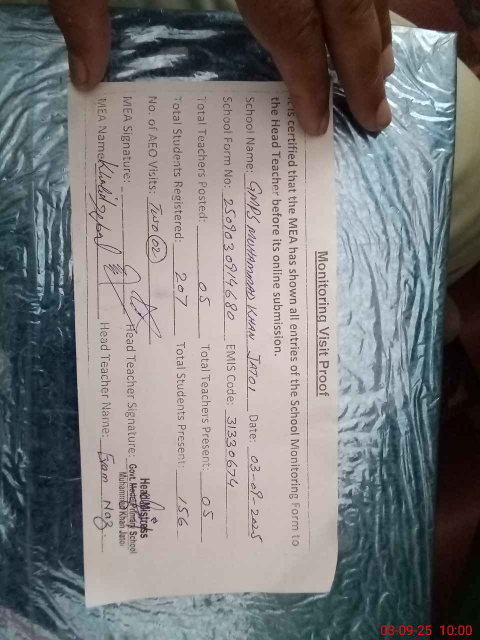 | EMIS Code: 31330674 | Name of School: GMPS MUHAMMAD KHAN JATOI | |||
