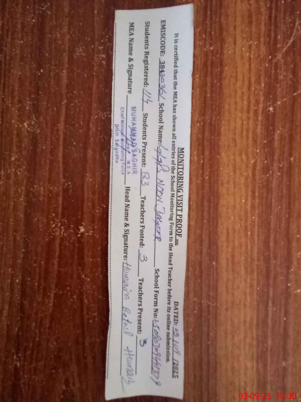 | EMIS Code: 38430361 | Name of School: GGPS NOON JAGEER | |||
