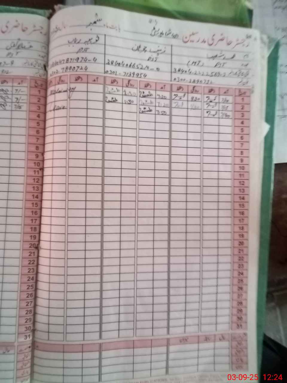 | Name: MU**** SH**** Designation: (School Headmaster's/Headmistress's) PST Phone/Cell Number: 03**** |