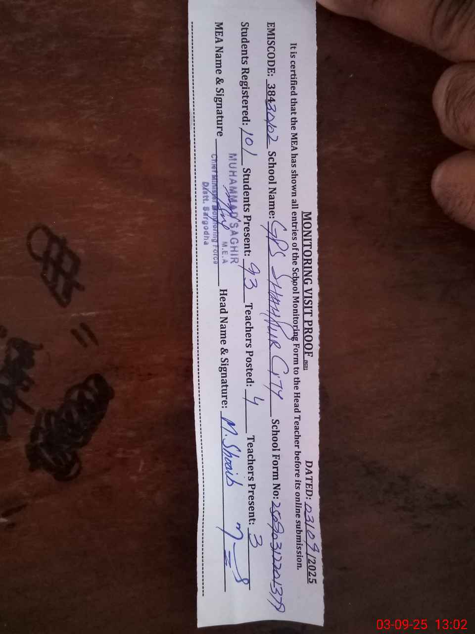 | EMIS Code: 38430102 | Name of School: GPS SHAHPUR CITY | |||