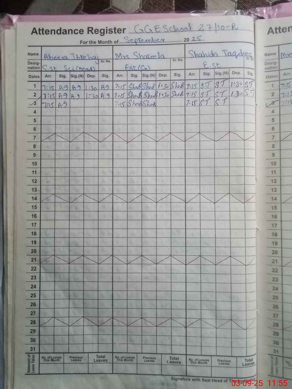 | No. of Students Present - Female | 28 | 0 | 19 | 14 | 24 | 28 | 29 | 31 | 38 | 25 | 31 | 267 | ||||