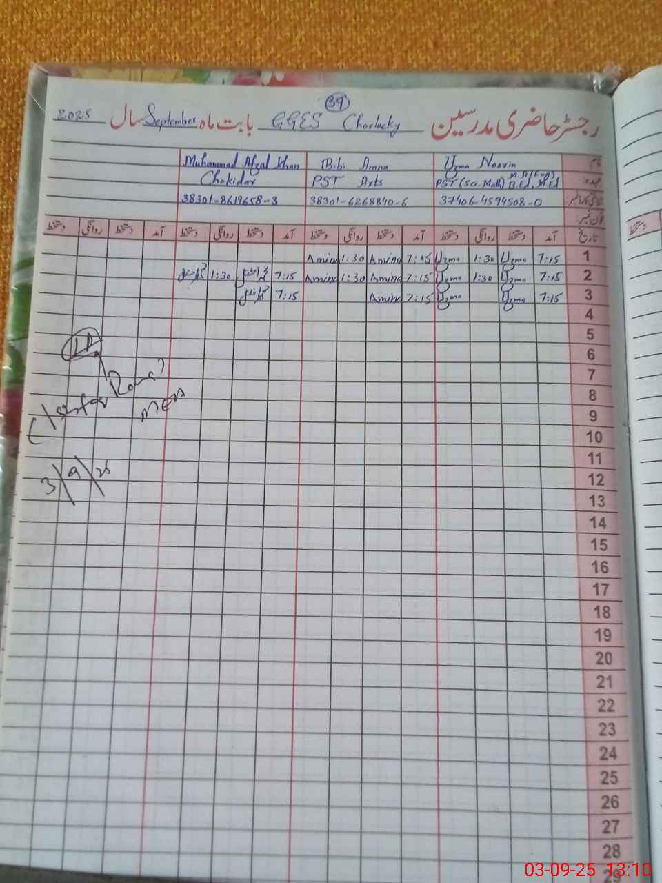 | Name: Uz**** No**** Designation: (School Headmaster's/Headmistress's) PST Phone/Cell Number: 03**** |