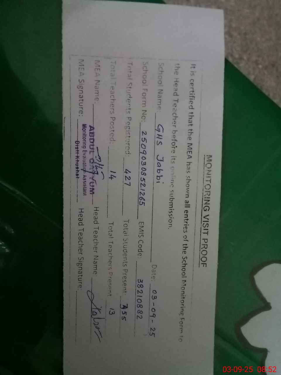 | EMIS Code: 38210882 | Name of School: GGHS JABBI | |||