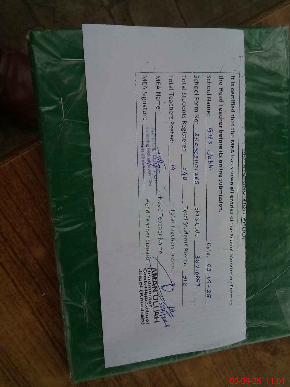 | Name: Am**** Designation: (School Headmaster's/Headmistress's) Headmaster Phone/Cell Number: 03**** |