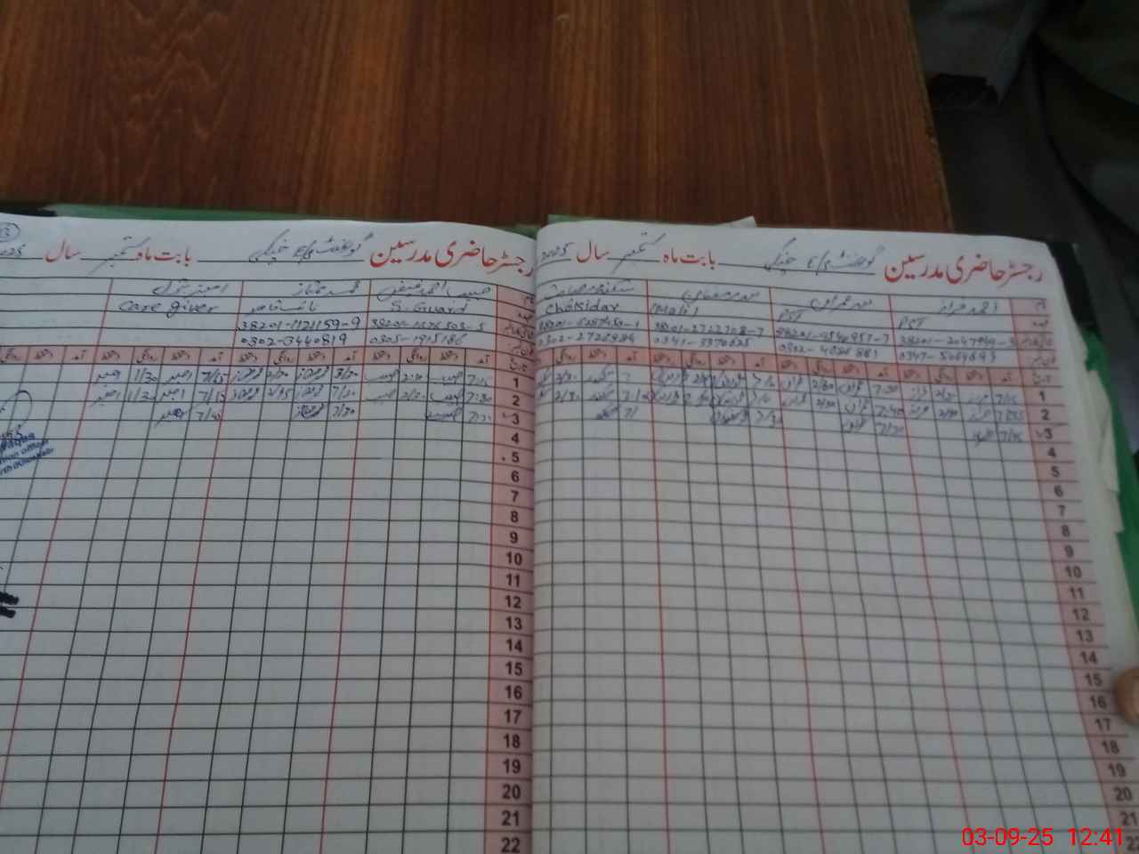 | CNIC | Full Name | Designation | R/C | Absence During Last Calender Month |