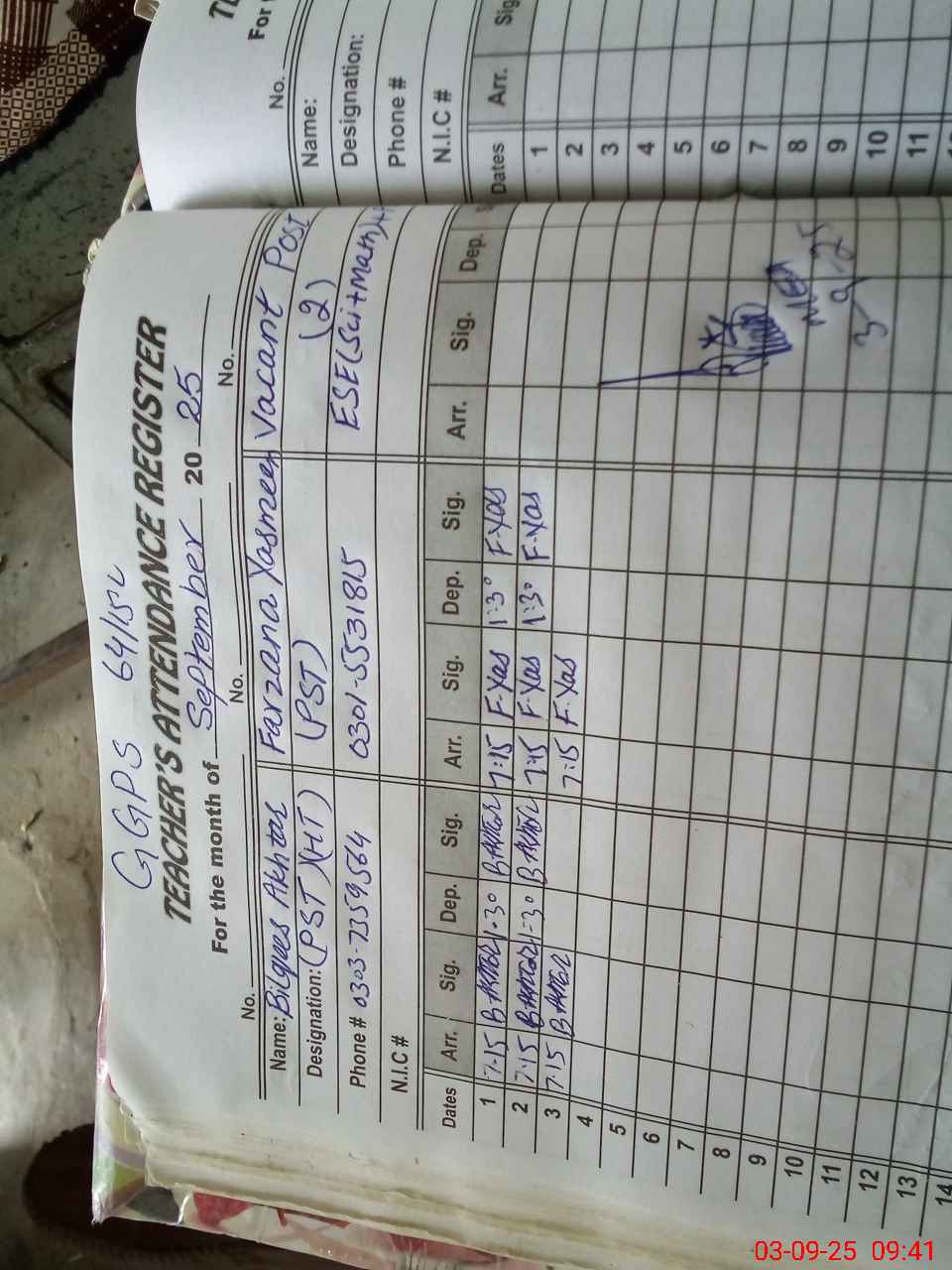 | Name: Bi**** Ak**** Designation: (School Headmaster's/Headmistress's) PST Phone/Cell Number: 03**** |