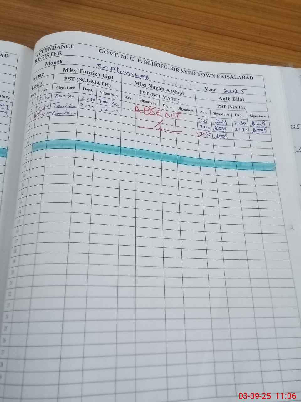 | CNIC | Full Name | Designation | R/C | Absence During Last Calender Month |
