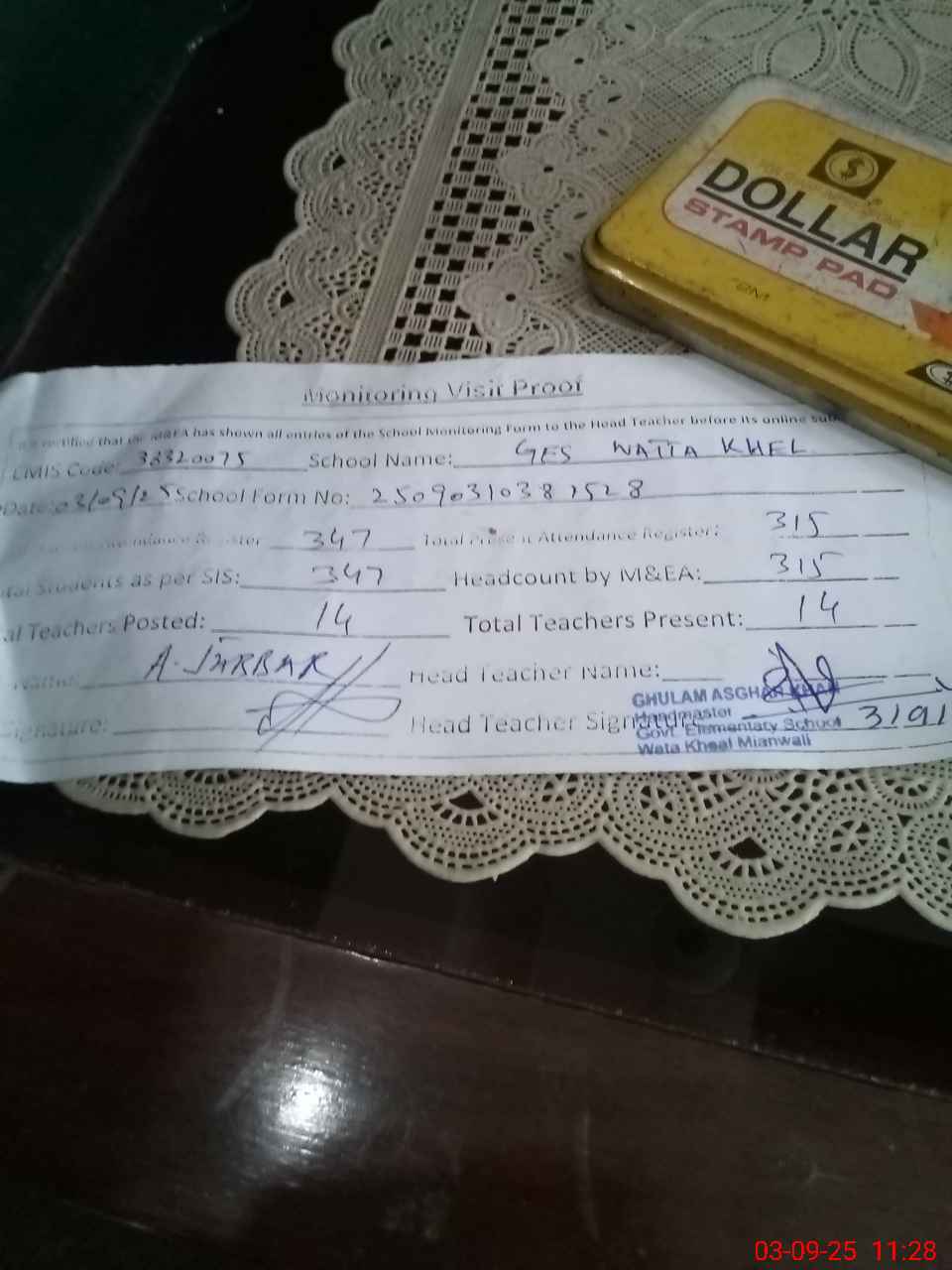 | EMIS Code: 38320075 | Name of School: GES WATTA KHEL | |||