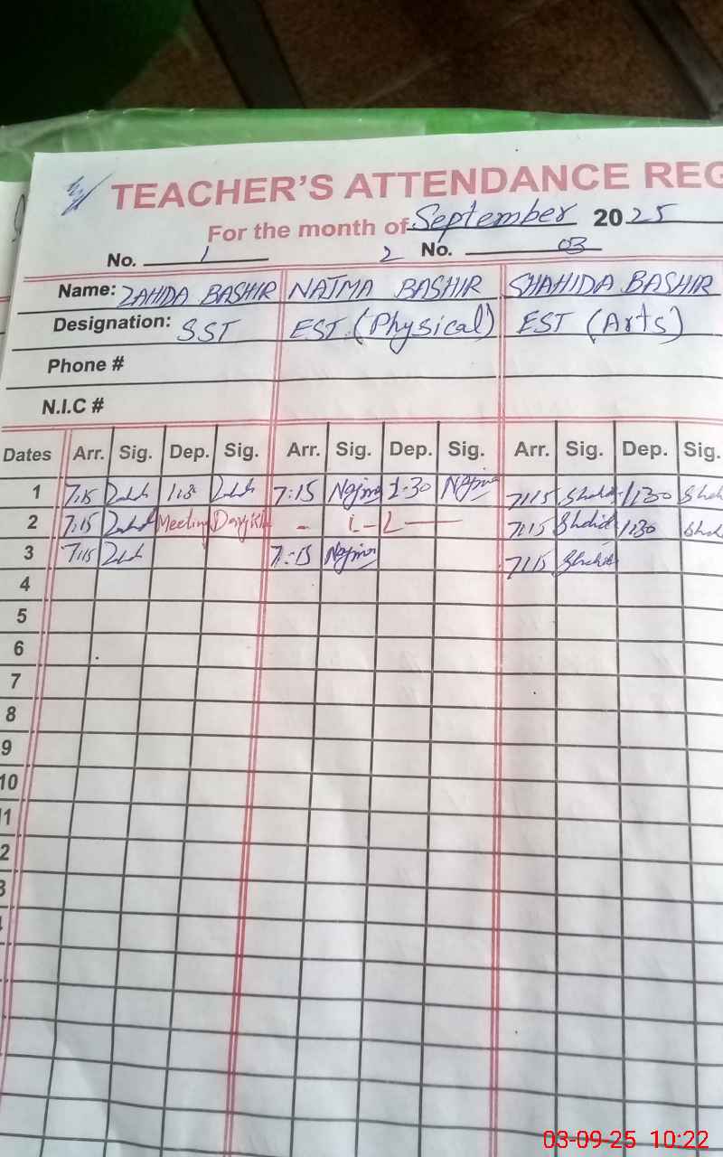| Name: ZA**** BA**** Designation: (School Headmaster's/Headmistress's) S.S.T.(Arts) Phone/Cell Number: 03**** |
