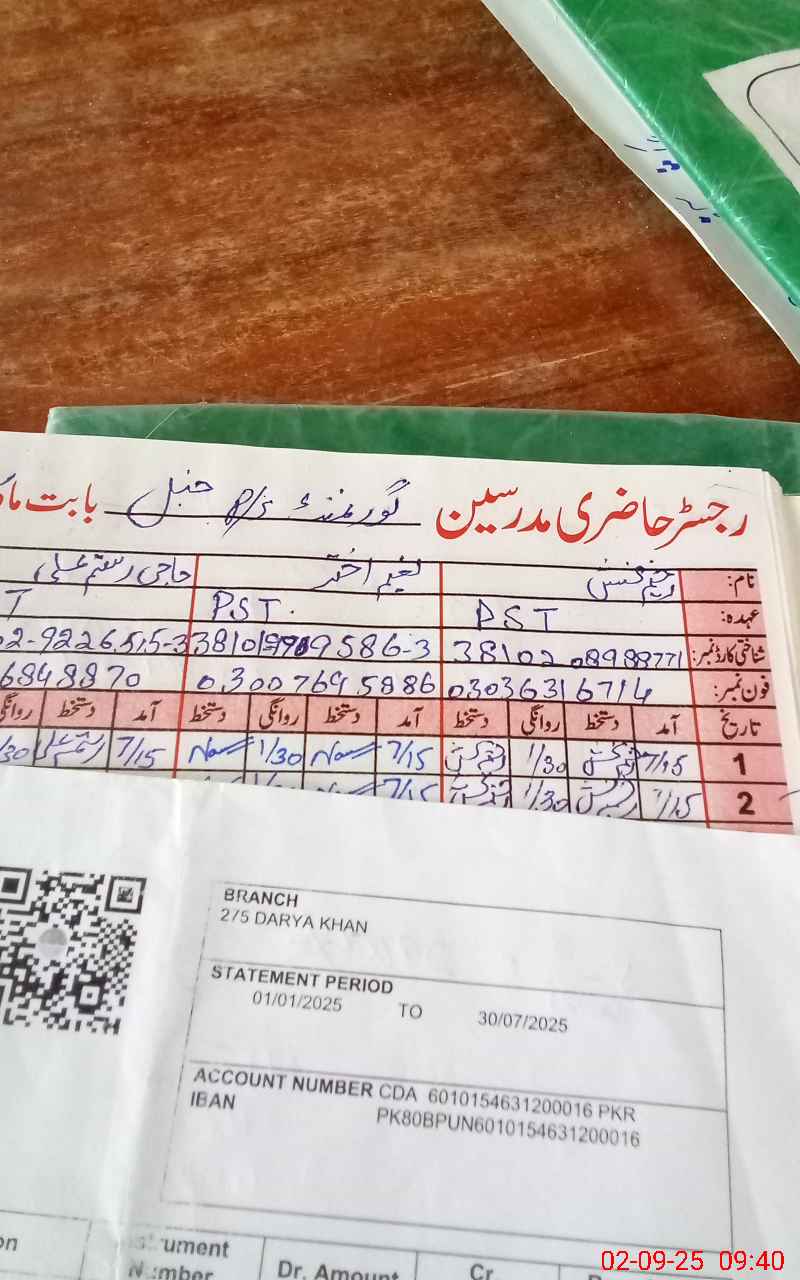 | Name: Mu**** AS**** Designation: (School Headmaster's/Headmistress's) PST SCI MATH Phone/Cell Number: 03**** |