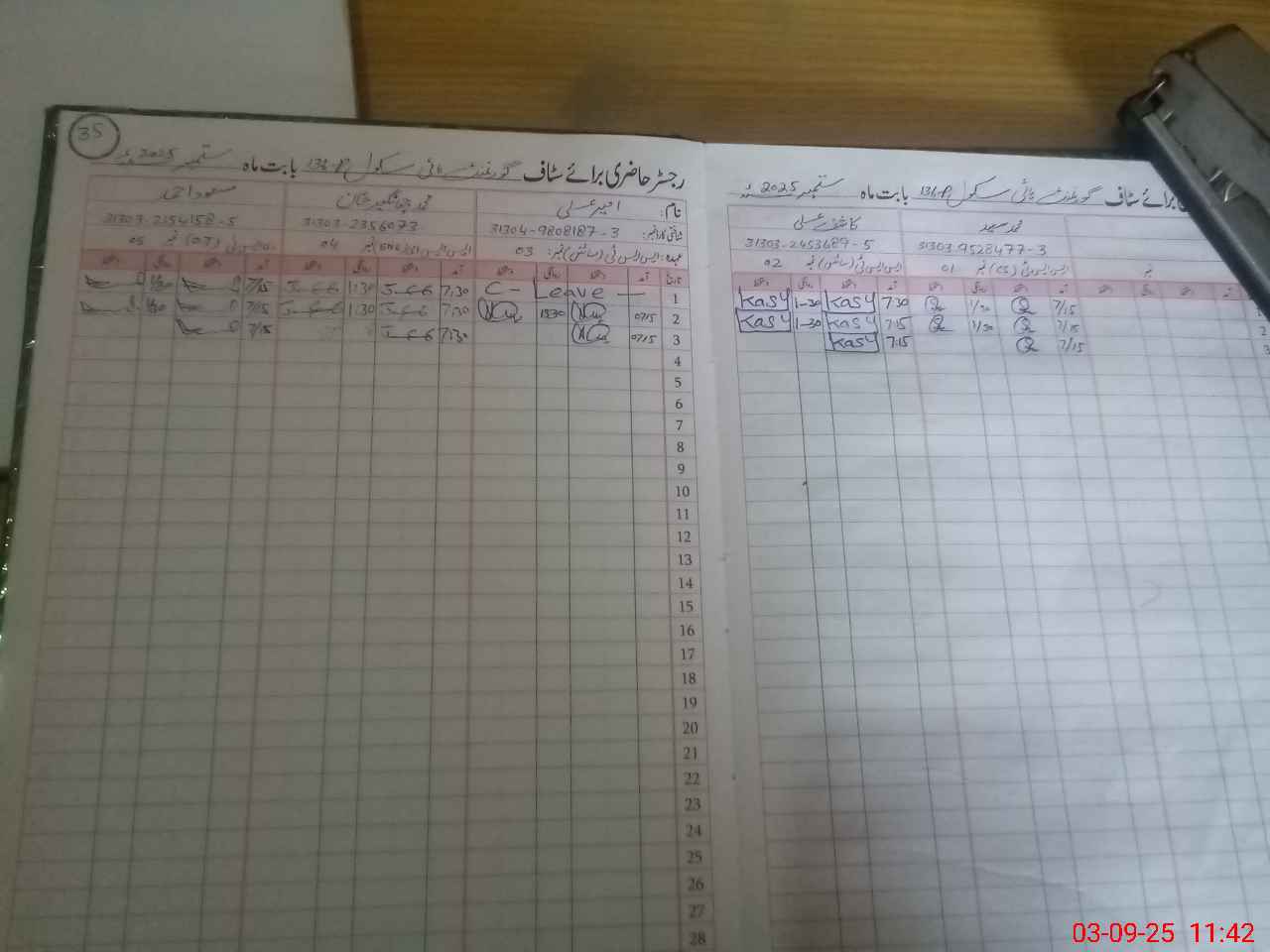 | CNIC | Full Name | Designation | R/C | Absence during last cal. month |