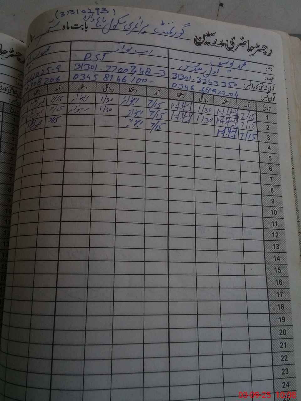 | Name: Mu**** Yo**** Designation: (School Headmaster's/Headmistress's) PST Phone/Cell Number: 03**** |