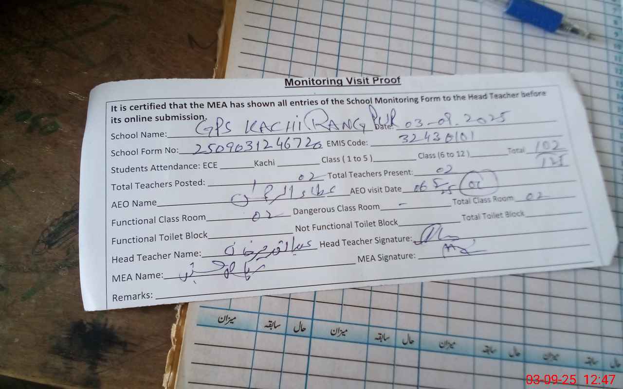 | EMIS Code: 32430101 | Name of School: GPS KACHI RANG PUR NO. 2 | |||