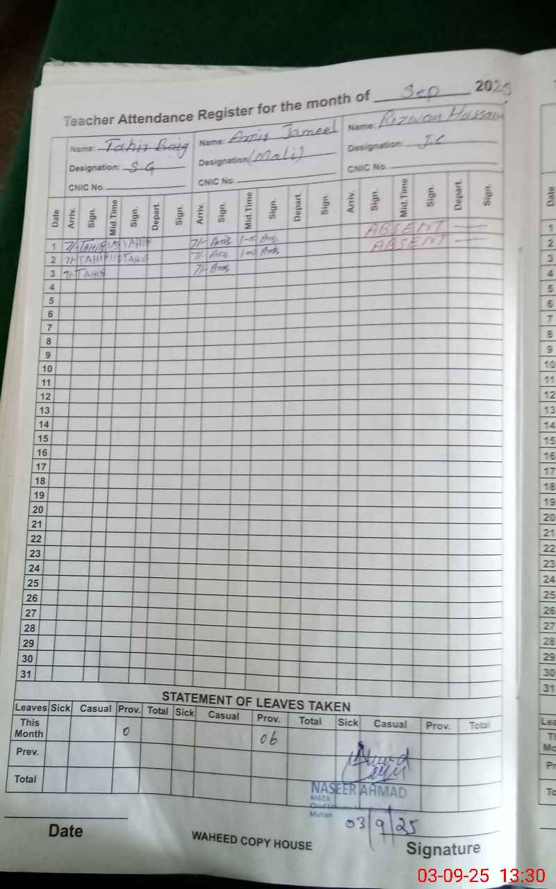 | Name: MU**** ZU**** AH**** Designation: (School Headmaster's/Headmistress's) H/M Phone/Cell Number: 03**** |