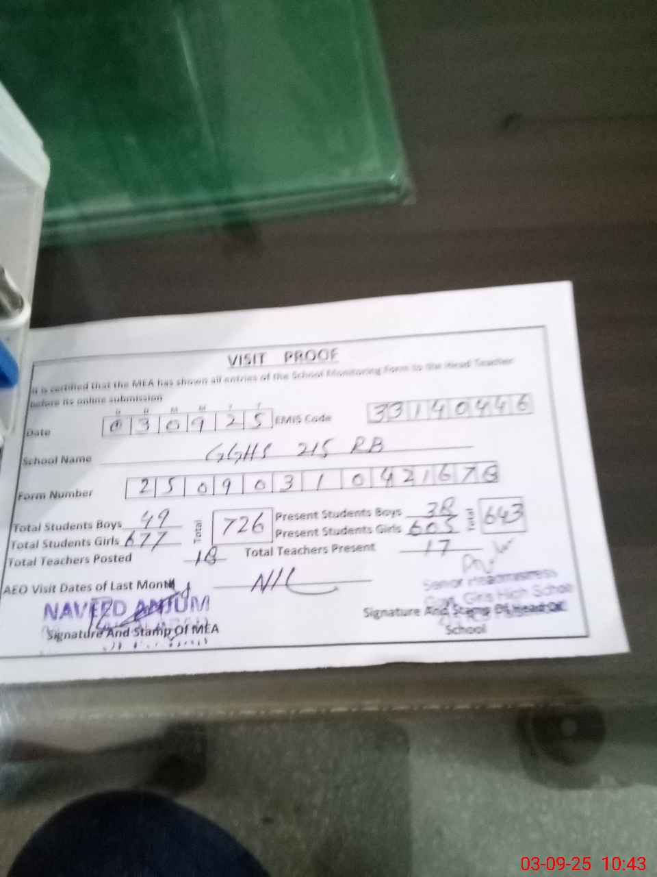 | EMIS Code: 33140446 | Name of School: GGHS CHAK NO 215 RB | |||