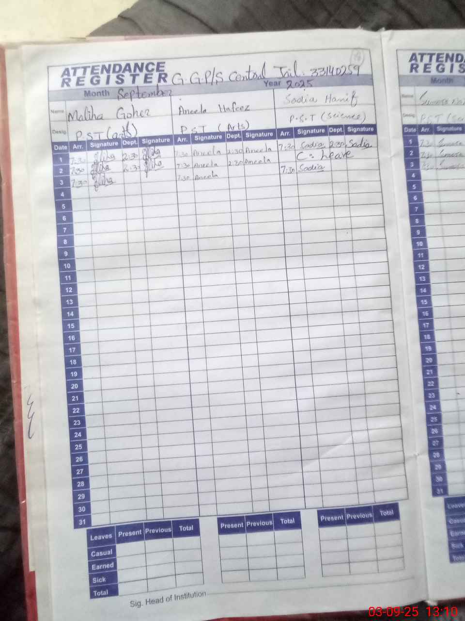 | Name: Ma**** Go**** Designation: (School Headmaster's/Headmistress's) ESE (Art) Phone/Cell Number: 03**** |