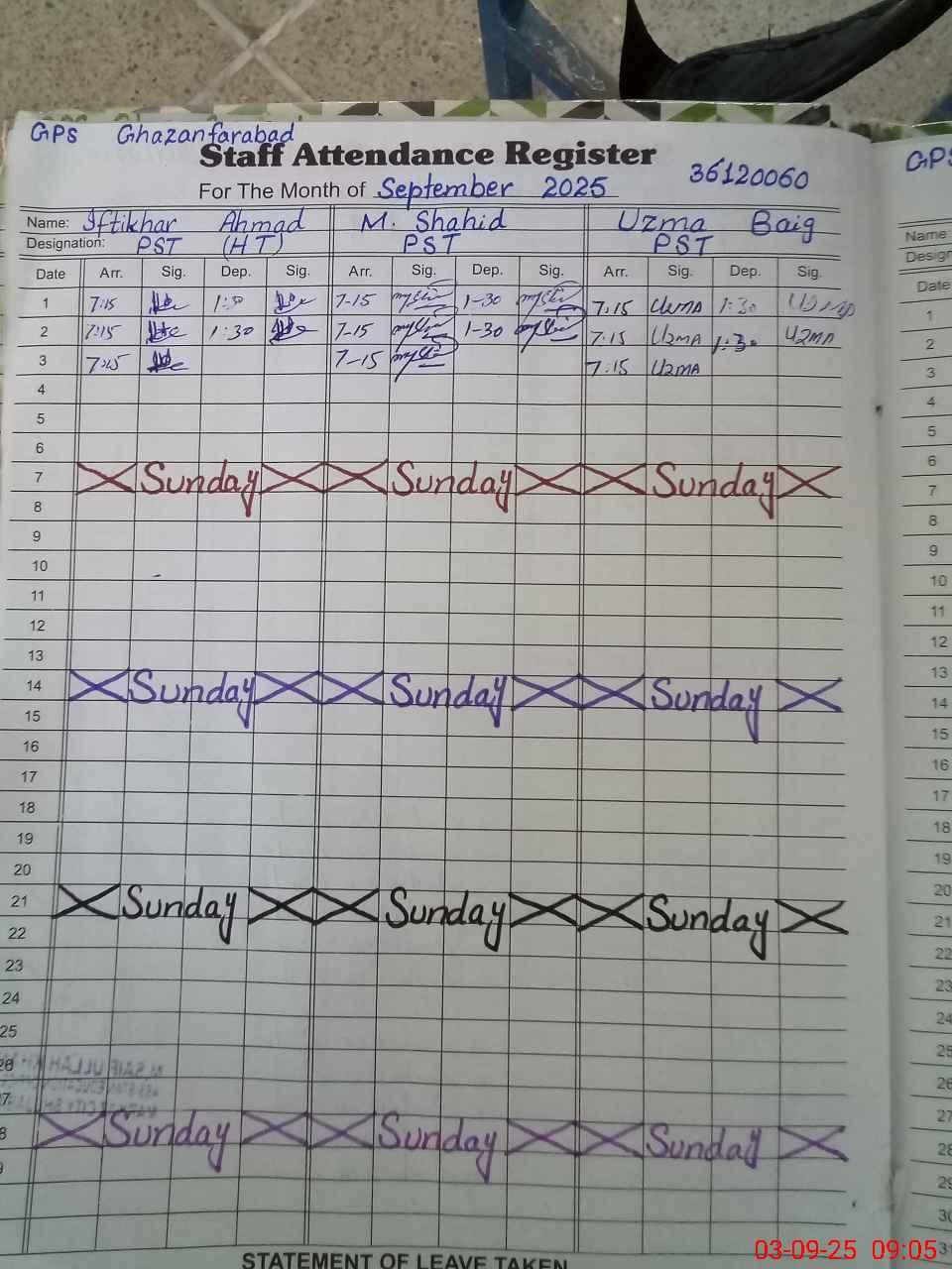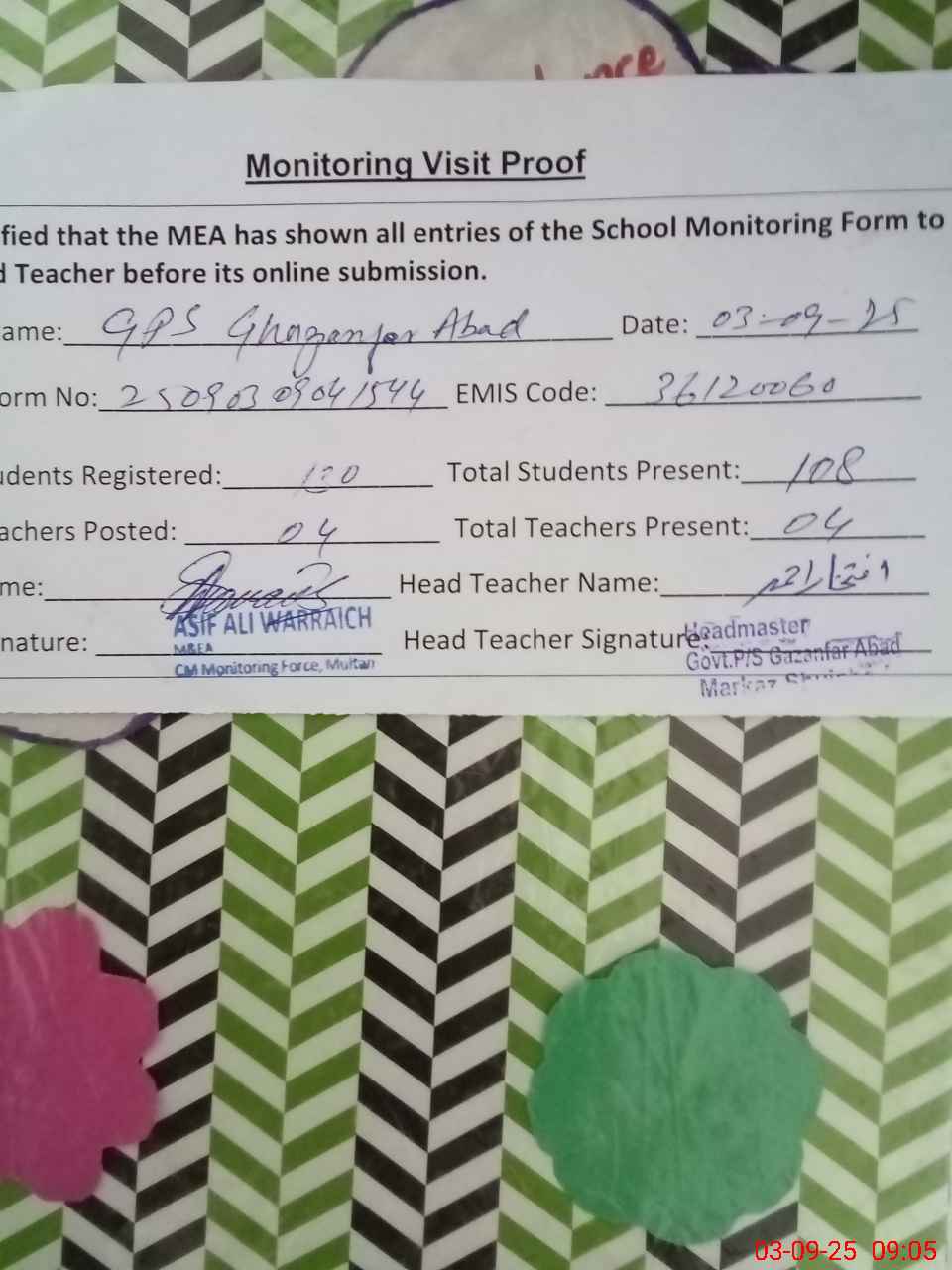 | EMIS Code: 36120060 | Name of School: GPS GHAZANFER ABAD | |||