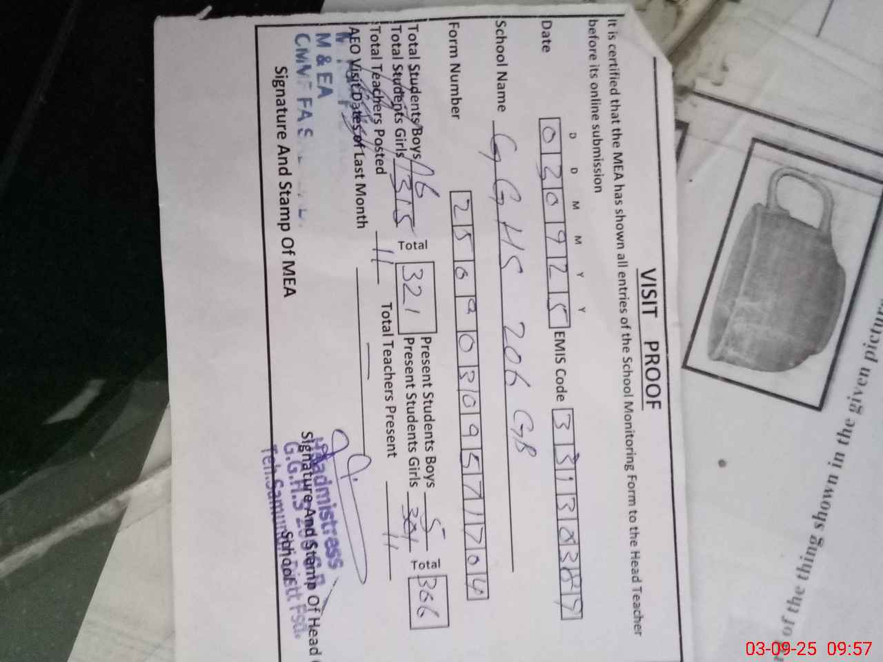| EMIS Code: 33130389 | Name of School: GGHS CHAK NO 206 GB | |||