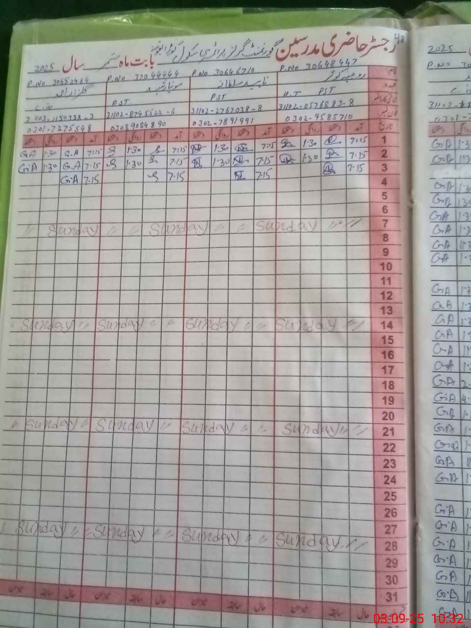 | Name: RO**** KO**** Designation: (School Headmaster's/Headmistress's) PST Phone/Cell Number: 03**** |