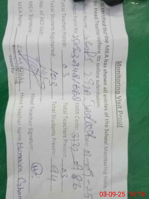 | EMIS Code: 31320986 | Name of School: GGPS 29 A JADEED LIAQAT PUR | |||