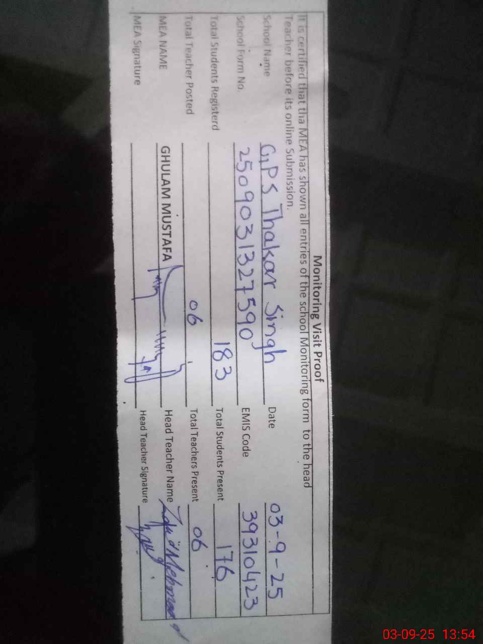 | EMIS Code: 39310423 | Name of School: GPS THAKAR SINGH | |||