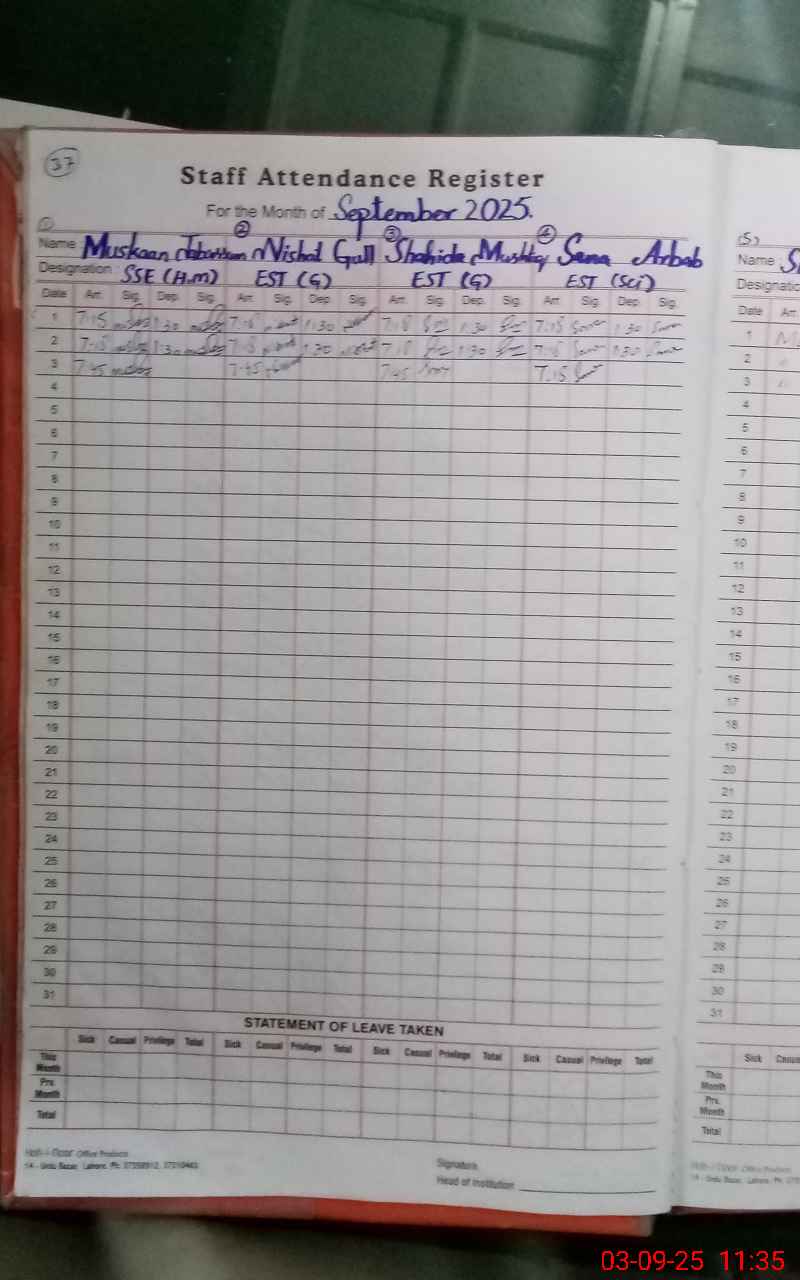| Name: MU**** TA**** Designation: (School Headmaster's/Headmistress's) SSE Phone/Cell Number: 03**** |