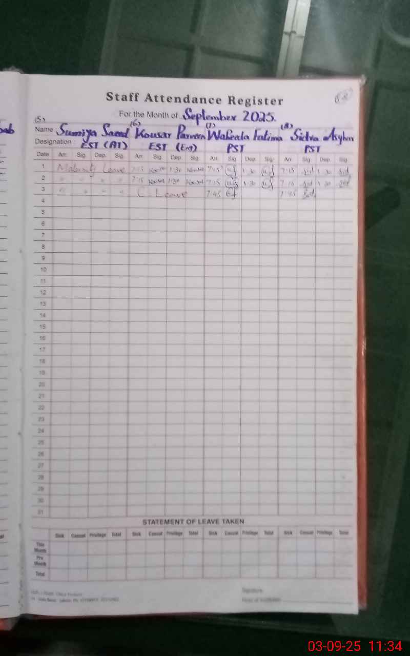 | 35**** | Su**** Sa**** | EST | Regular | 0 | 0 | 0 | 0 | 0 | 0 | 0 | 0 | 0 | Maternity |