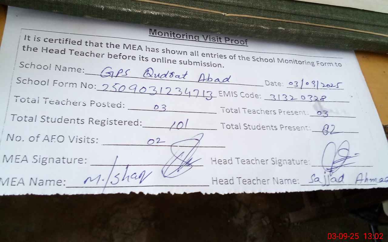 | EMIS Code: 31320328 | Name of School: GPS QUDRAT ABAD | |||