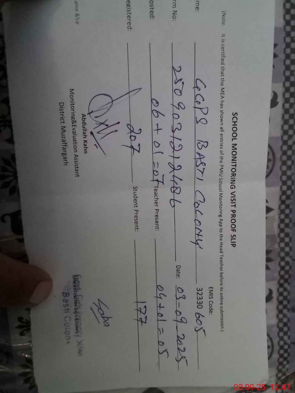 | EMIS Code: 32330605 | Name of School: GGPS BASTI COLONY | |||