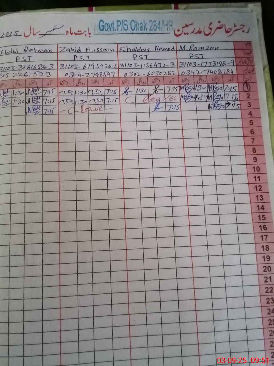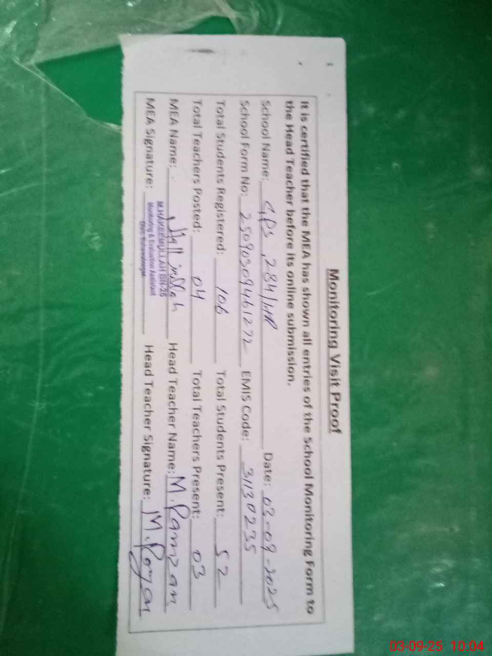 | EMIS Code: 31130235 | Name of School: GPS CHAK NO 284 HR | |||