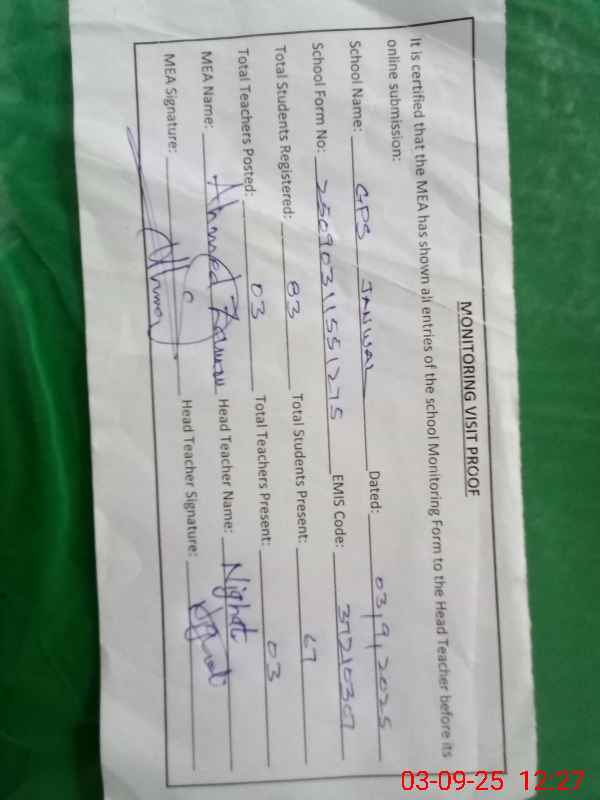| EMIS Code: 37210307 | Name of School: GGPS JANWAL | |||