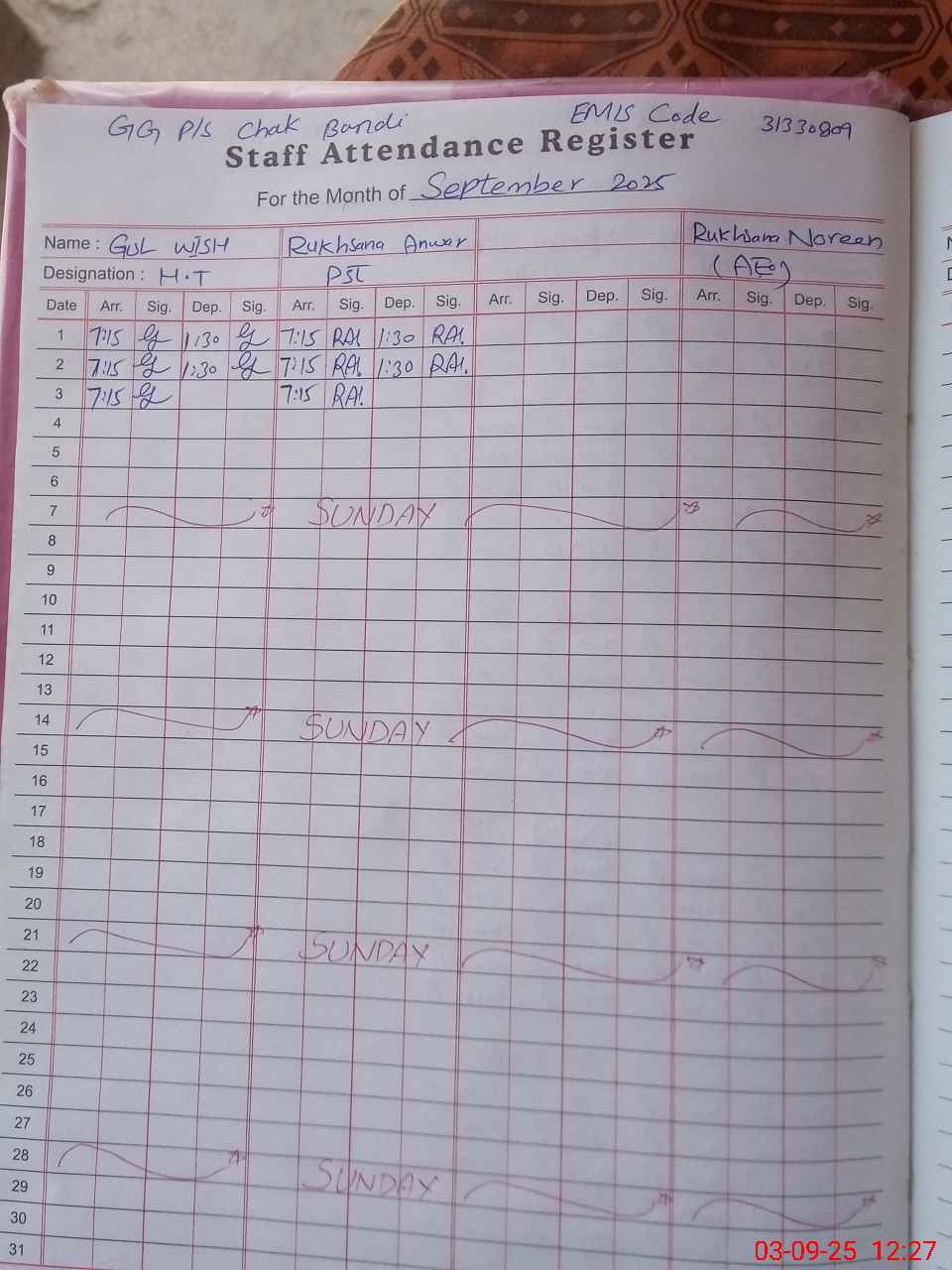 | EMIS Code: 31330809 | Name of School: GGPS CHAK BANDI | |||