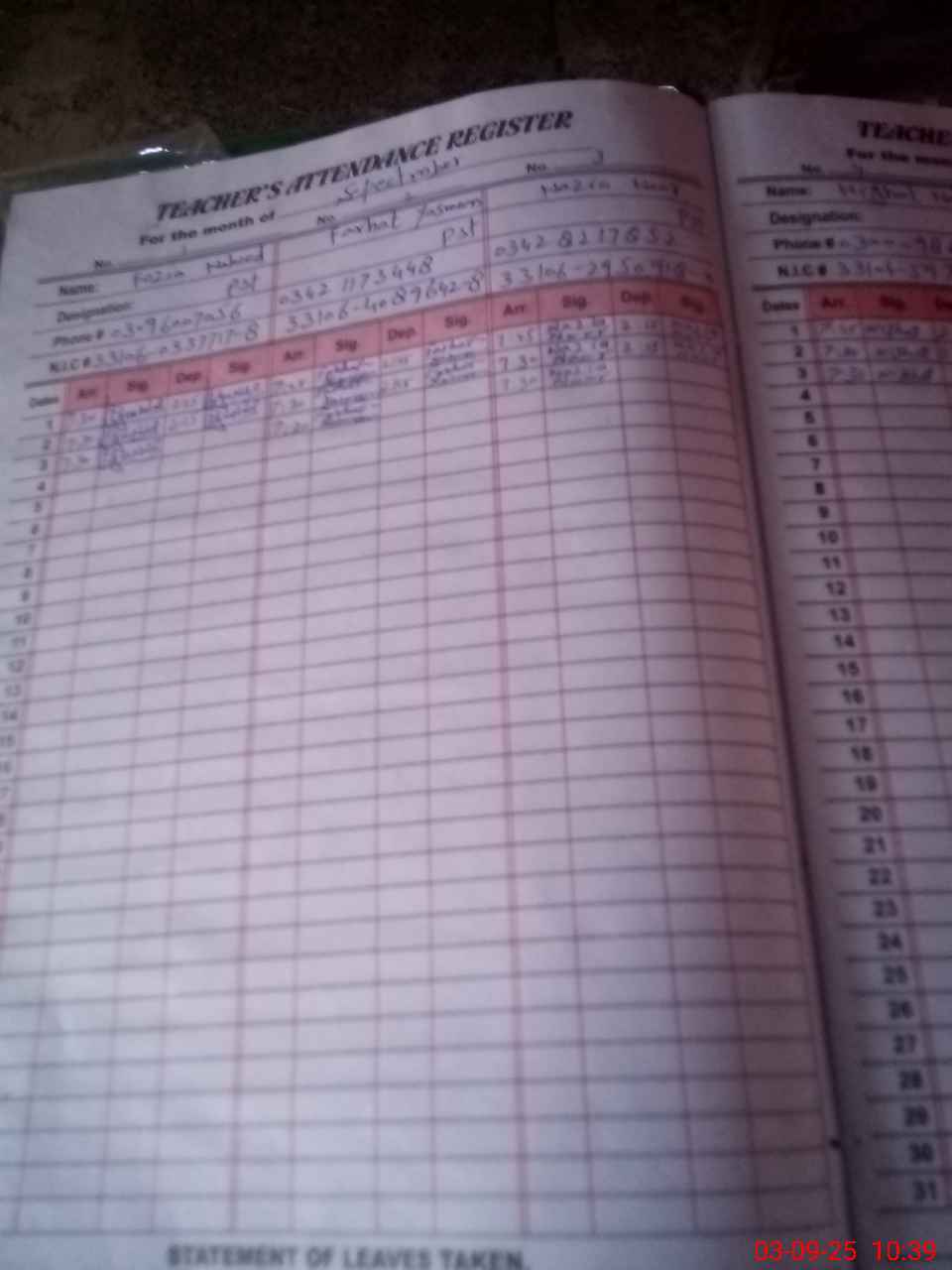 | Name: FO**** NA**** Designation: (School Headmaster's/Headmistress's) PST Phone/Cell Number: 03**** |
