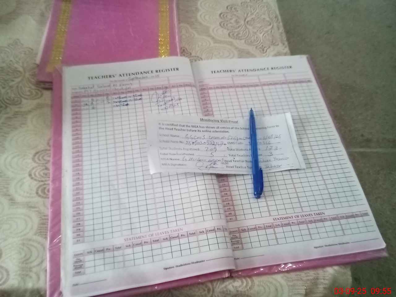 | Attendance Register | Head Teacher | MEA with School | Visit Proof |
