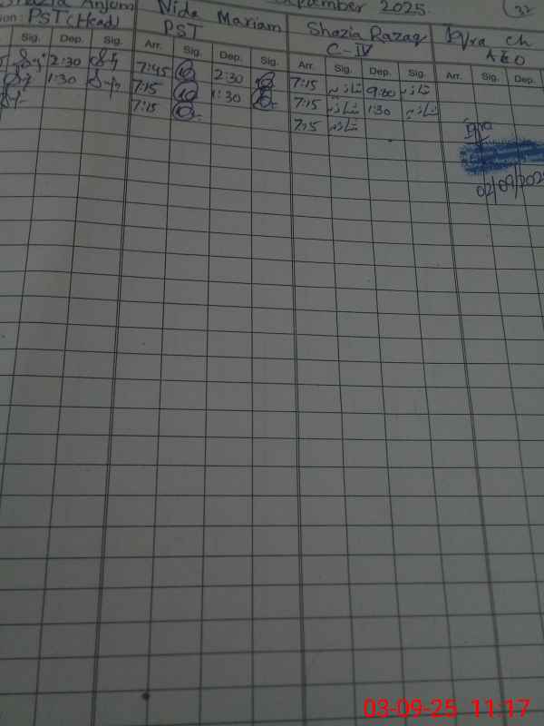 | Name: SH**** AN**** Designation: (School Headmaster's/Headmistress's) PST Phone/Cell Number: 03**** |