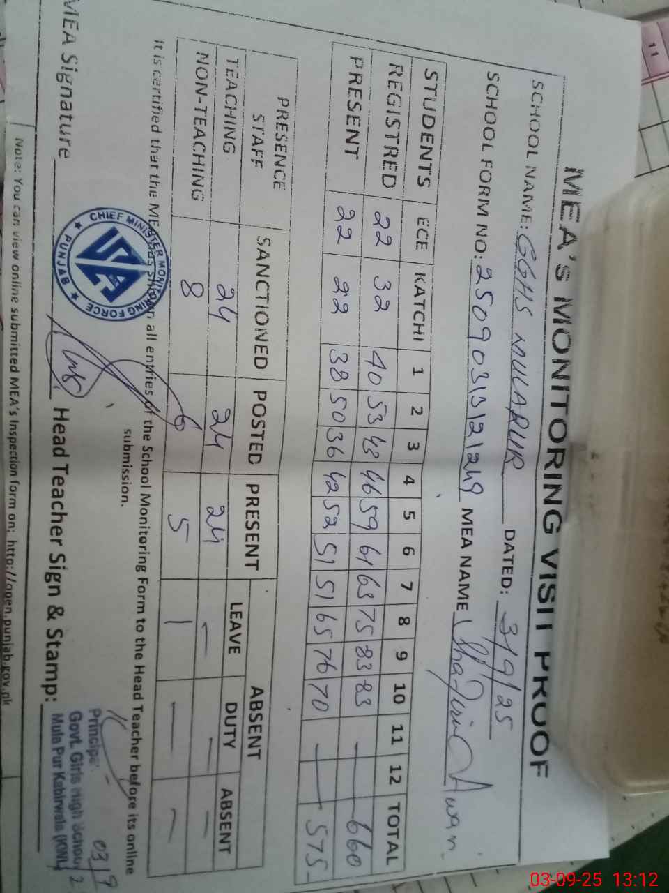 | EMIS Code: 36410360 | Name of School: GGHS MOULA PUR KABIRWALA | |||