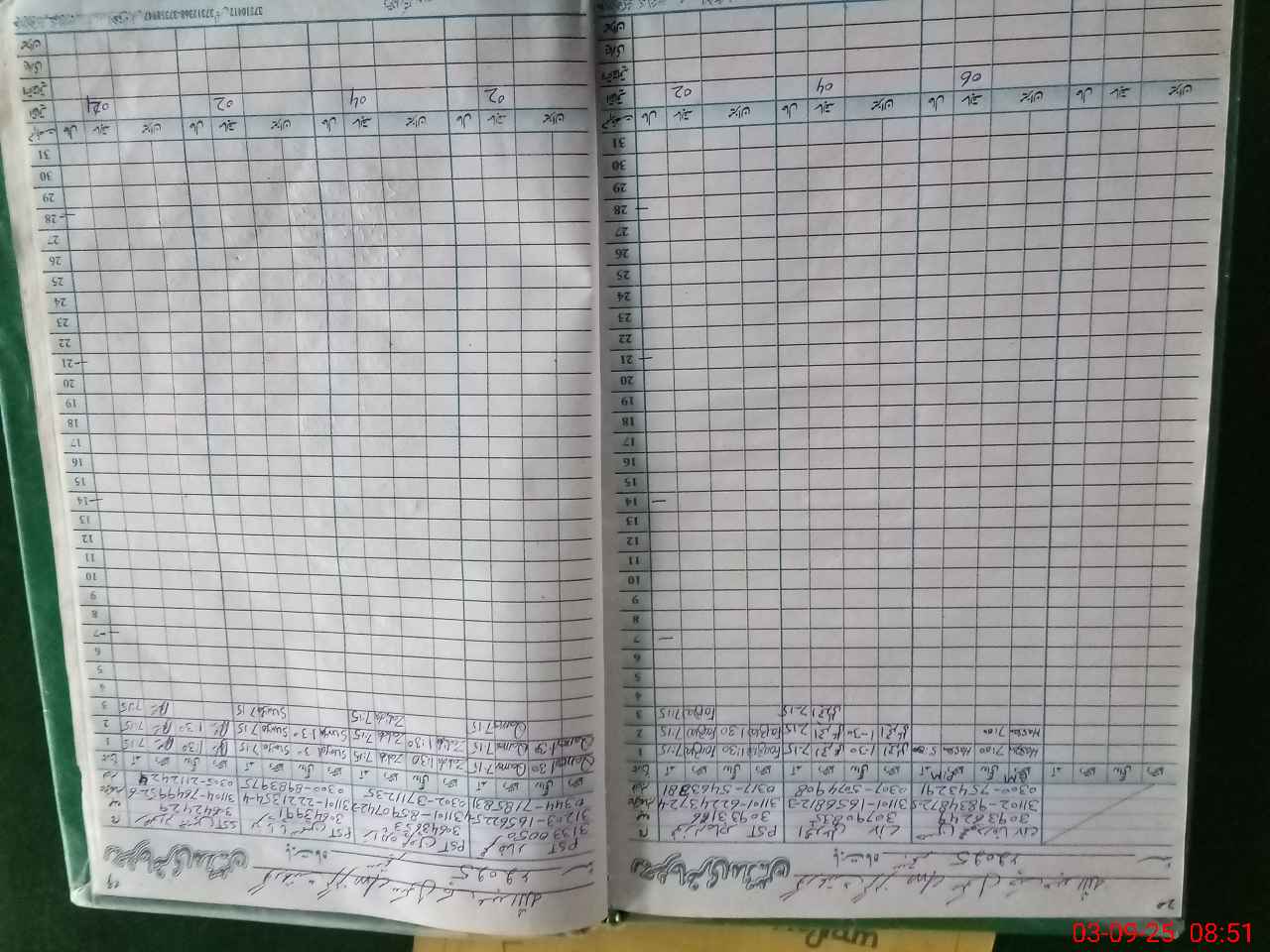 | Monitoring Date: 03-09-2025 | Start Time: 03-09-2025 08:47 AM | End Time: 03-09-2025 09:38 AM | Name of MEA: MU**** AZ**** BN**** | |