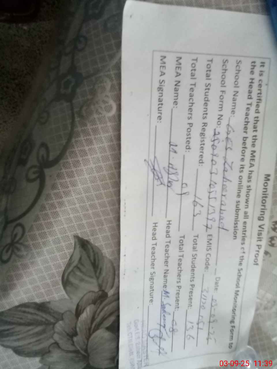 | EMIS Code: 31120051 | Name of School: GES ZAHEER ABAD CHISHTIAN | |||