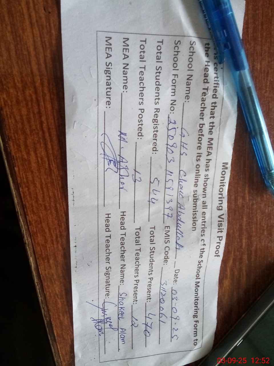 | EMIS Code: 31120061 | Name of School: GHS CHAK ABDULLAH | |||
