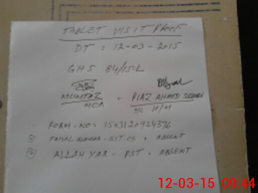 | Attendance Register | Head Teacher | MEA with School | Visit Proof |