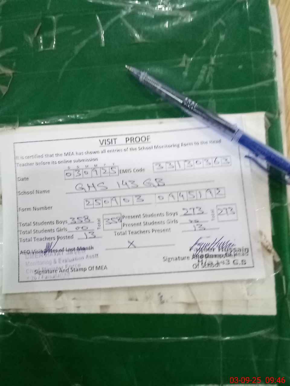 | EMIS Code: 33130363 | Name of School: GHS CHAK 143 GB SAMUNDRI FSD | |||