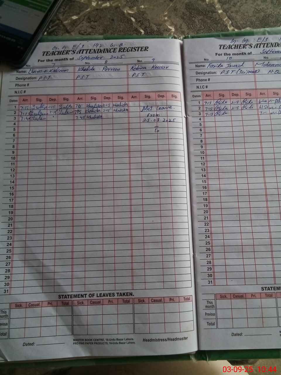 | Name: SH**** AK**** Designation: (School Headmaster's/Headmistress's) S.S.T (GENERAL ) Phone/Cell Number: 03**** |