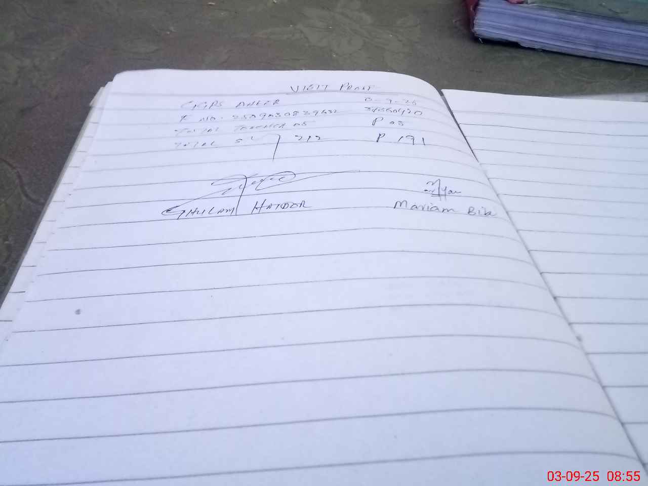 | Monitoring Date: 03-09-2025 | Start Time: 03-09-2025 08:28 AM | End Time: 03-09-2025 08:57 AM | Name of MEA: Gh**** Ha**** | |