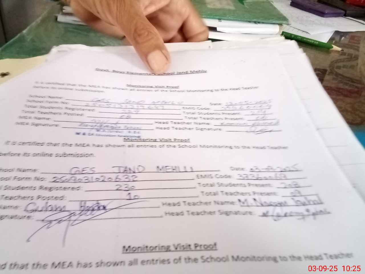 | Attendance Register | Head Teacher | MEA with School | Visit Proof |